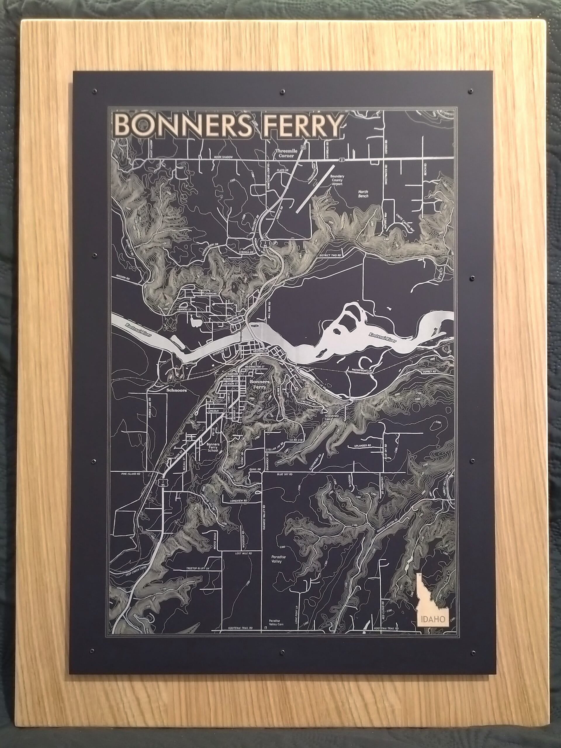 I start by finding high-quality digital maps of the desired area and importing them into my design program for editing. Editing involves splitting the original map into its component parts (roads, streams, etc), trimming overlapping information, stitching sections together, adding additional information, and finally, formatting the output for the laser.